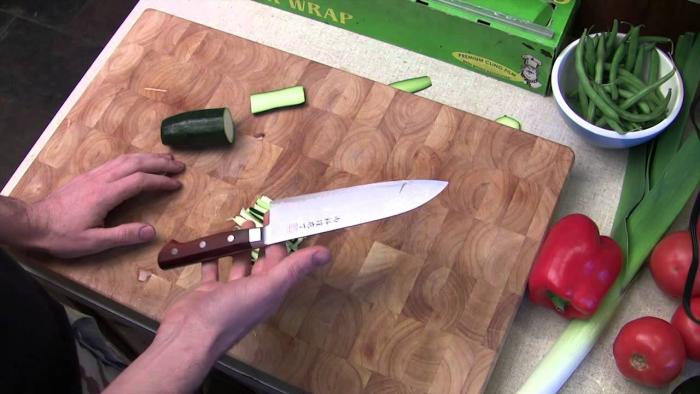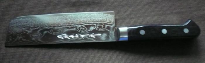 Jinak je to nůž Nakiri a to je speciál na zeleninu. Japonští kuchaři používají asi 40 typů nožů i když jsou si často podobné. Asi mu (nožovi) ale bude jedno jestli bude krájet třeba kližku na guláš. Zmrzlé věci skoro neporcuju takže tohle moc nehrozí. Ostatně výše zmíněný Magoroku Deba si i se zmrzlým kuřetem poradí. Mám ho asi dva roky takže už jsem ho párkrát použil.
