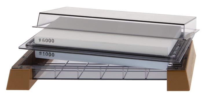 All Na levnější nože mám diamantovou ocílku (viz. foto), na ty lepší vodní kámen. Na zoubky mám taky brousek ale neumím to s ním.
