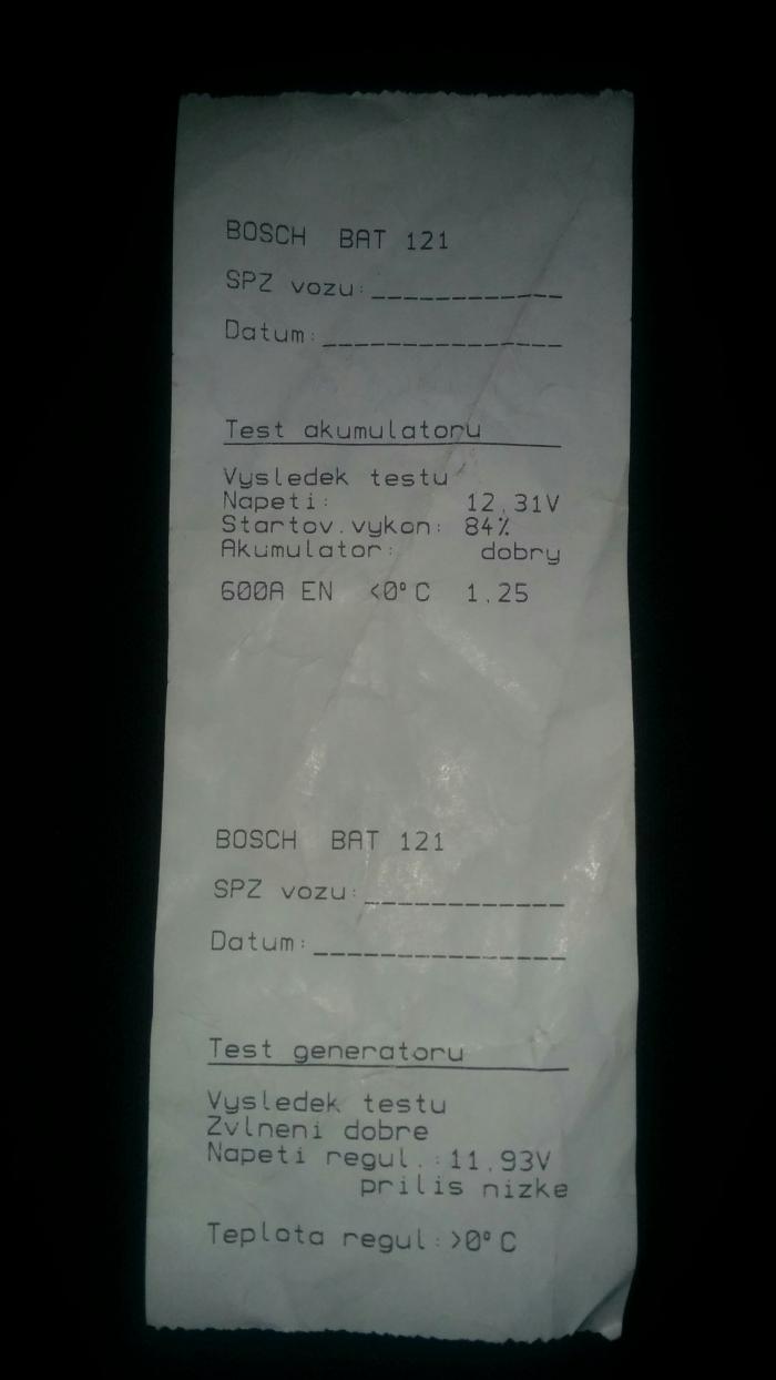 Tak dobré to není :( zajel jsem pro jistotu na test do servisu a na obrázku je výsledek. Regulátor špatně funguje