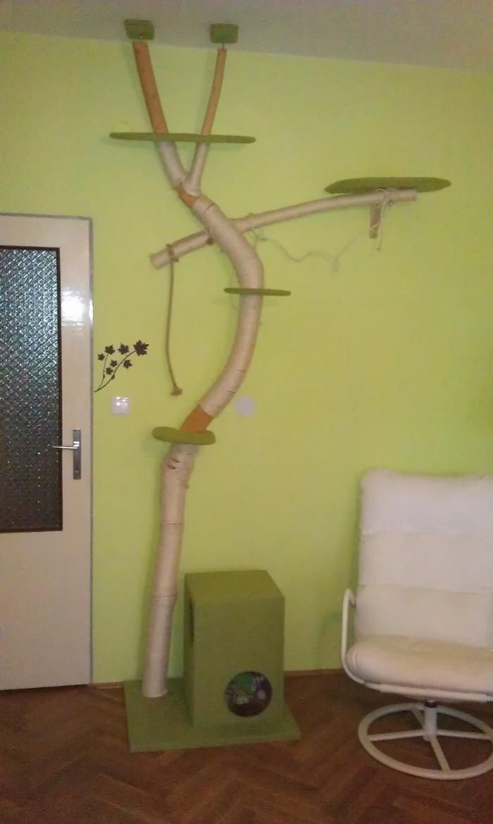 duke Ahoj, do bytu jsem vyráběl strom pro kocoura a ukotvení jsem měl vyřešené rozpěrným šroubem na vrchu a na vyložené větvi a ploše na spaní hmoždinu do zdi. Až budu doma můžu pohledat foto stromu.