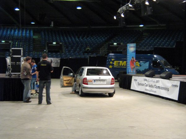 Co se týče Emmy tak to byl vážně chaos nad chaos, až sem nechápal jakto že mistrák DE byl tak sqvělej a Evropa tak zběsilá. Nejvíc v háji sem byl z hodnocení vzhledu aut kde Tazzovi krutě ublížili -3 body za barvu zadních vejšek které byli černé?? sem nějak nepobral :o( ostatním auta konkurentů zas měli nepochopitelně full za vzhled a jednalo se o totální sériovky viz toto foto fábie za full body v kategorii z Tazzem: