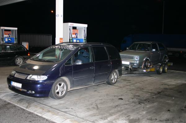 Ve středu večer asi 2 hodiny před odjezdem sem měl ještě rozkuchaný auto, vyndanou řídící jednotku a všude kabelovej zmatek, aneb s Ríšou sem se asi 2 roky domlouval na poladění až sme to poladily pul hodiny pred odjezdem do Danska, prostě taková klasika, když se nepředělává muzika poslední hodiny tak aspoň auto :o) jinak by to snad ani nebylo ono, CV team potvrdí neboť s tímto máme bohaté zkušenosti :o), k cestě nemám co dodat jen škoda bělouše Pagoše mi bylo fakt líto až sem se pak divil jak byl v pohodě já bych tak v poho nebyl po tý noci v zmrzlim autě., prostě pohodář na entou. Při cestě bylo pár ftipnejch situací jako že sme brzdily i vočima když sme na 70ce v Dánsku letěli asi 150 a on v dálce policajt - pak se z něj vyklubal chlápek na scootru ve vestě :o) Výstaviště ohromný a káry neskutečný.