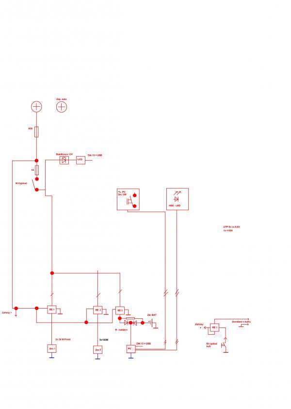 Schéma v příloze je nedodělané. Jako chybí spoždovací obvody po nastartovaní a zvlášť přepínací obvod Radio/PC,noční provoz atd.