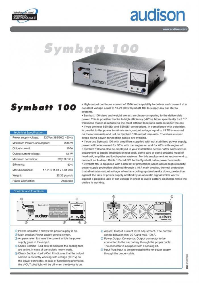 Audison Symbatt 100 - stabilizovaný zdroj 100A